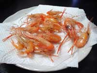 少ない釣果だが、ここで一時中断、バーベキュータイム。アジの開き、ニジマスの開き(笑)、大量の肉、そしてメインディッシュのテナガエビ! これは、小さいのは揚げて、大きいのはなんと串焼き!