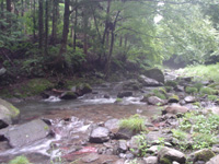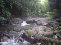 一番目の脱渓点に、予想以上の時間がかかって到着。もう一つ上のポイントまで行き、人が入ってたら上がって車で移動しようと思ったが、めずらしく車が停まっていない。