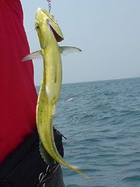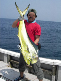 yagaさん、たかたかさん、しのさんには美味しそうなサワラも掛かり、そしてついにシイラが混じり始めた。 型は小さいながらもほかの青物に混じって、ポツポツ上がる。小型だが中にはジャンプする元気なものもいた。気が付けば全員シイラゲットである。