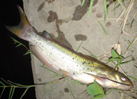 と言ったのが正解、あとで調べたらギギという魚のようで、刺に毒がある可能性があるそうだ。そもそもこの魚、関西以南にしか棲息していなかったのが、アユの稚魚放流に混じって全国で見られるようなったらしい。こうやって人為的な理由で生態系が変わっていく一面もあるんだなぁ。