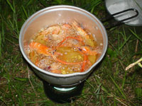 じゅわ〜っと音をたて、あっというまに朱色に染まるテナガたち。あたりにエビの香ばしい臭いが充満して、とてもいい感じです。